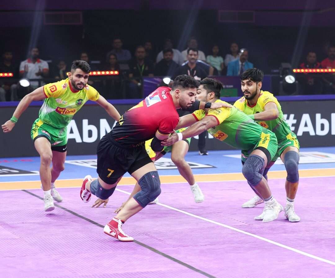 ಬೆಂಗಳೂರು ಬುಲ್ಸ್ನ ರೈಡರ್ ಗಣೇಶ ಹನಮಂತಗೋಲ್ ಆಕರ್ಷಕವಾಗಿ ಆಡಿದರೂ, ಸಂಕೇತ್ ಸಾವಂತ್ರ ಟ್ಯಾಕಲ್ನಿಂದ ತಂಡದ ಆರಂಭಿಕ ಉತ್ಸಾಹ ಕಡಿಮೆಯಾಯಿತು. ಪಟ್ನಾದ ಮನಿಂದರ್ ಸಿಂಗ್ ಇನ್ನೂ ಪರಿಣಾಮಕಾರಿಯಾಗಿ ಆಡದಿರುವಾಗ, ಬುಲ್ಸ್ನ ರಕ್ಷಣಾತ್ಮಕ ಲೋಪಗಳನ್ನು ಬಳಸಿಕೊಂಡ ಪಟ್ನಾ ಆರಂಭಿಕ ಹಂತದಲ್ಲಿ ಸ್ವಲ್ಪ ಮೇಲುಗೈ ಸಾಧಿಸಿತು.