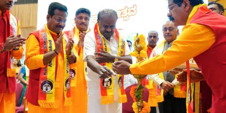 ಅಹ್ಮದಾಬಾದ್ (ಗುಜರಾತ್): ಗುಜರಾತ್ನ ಅಹ್ಮದಾಬಾದ್ನಲ್ಲಿ ನೆಲೆಸಿರುವ ಕನ್ನಡಿಗರ ಭಾಷಾಭಿಮಾನಕ್ಕೆ ಮನಸೋತ ಕೇಂದ್ರ ಭಾರೀ ಕೈಗಾರಿಕೆ ಹಾಗೂ ಉಕ್ಕು ಸಚಿವ ಎಚ್.ಡಿ. ಕುಮಾರಸ್ವಾಮಿ ಅವರು, ಅಹ್ಮದಾಬಾದ್ ಕರ್ನಾಟಕ ಸಂಘಕ್ಕೆ ಸ್ವಂತ ಕನ್ನಡ ಭವನ ನಿರ್ಮಾಣಕ್ಕೆ ಅಗತ್ಯವಿರುವ ನಿವೇಶನವನ್ನು ಕೊಡಿಸಿಕೊಡಲು ಗುಜರಾತ್ ಸರ್ಕಾರದೊಂದಿಗೆ ಶೀಘ್ರದಲ್ಲೇ ಚರ್ಚೆ ನಡೆಸುವುದಾಗಿ ಭರವಸೆ ನೀಡಿದ್ದಾರೆ.
