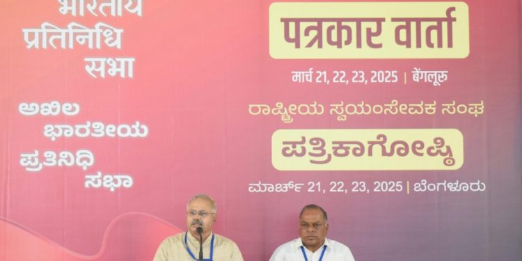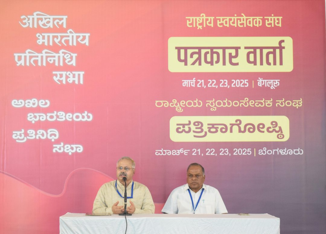 ಬೆಂಗಳೂರು: ರಾಷ್ಟ್ರೀಯ ಸ್ವಯಂಸೇವಕ ಸಂಘದ (ಆರ್ಎಸ್ಎಸ್) ವಾರ್ಷಿಕ ಅಖಿಲ ಭಾರತೀಯ ಪ್ರತಿನಿಧಿ ಸಭೆ (ಎಬಿಪಿಎಸ್) ಮಾರ್ಚ್ 21 ರಿಂದ 23, 2025 ರವರೆಗೆ ಬೆಂಗಳೂರು ನಗರದ ಚನ್ನೇನಹಳ್ಳಿಯ ಜನಸೇವ ವಿದ್ಯಾಕೇಂದ್ರದಲ್ಲಿ ನಡೆಯಲಿದೆ. ಇಂದು ನಡೆದ ಪತ್ರಿಕಾಗೋಷ್ಠಿಯಲ್ಲಿ, ಆರ್ಎಸ್ಎಸ್ನ ಅಖಿಲ ಭಾರತೀಯ ಪ್ರಚಾರ ಪ್ರಮುಖ ಸುನಿಲ್ ಅಂಬೇಕರ್, ಸಂಘದ ಶತಮಾನೋತ್ಸವದ ಮುನ್ನೋಟದಲ್ಲಿ ಸಂಘಟನೆಯ ಪ್ರಮುಖ ಕಾರ್ಯಕ್ಷೇತ್ರಗಳನ್ನು ವಿವರಿಸಿದರು.