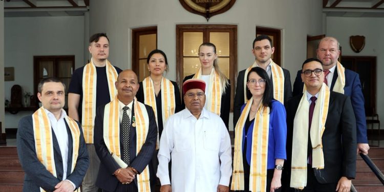 ಬೆಂಗಳೂರು, ರಾಜಭವನ: ಎಸ್ಟೋನಿಯಾದ ಭಾರತ ರಾಯಭಾರಿ ಶ್ರೀಮತಿ ಮಾರ್ಜೆ ಲುಪ್ ಅವರ ನೇತೃತ್ವದ ನಿಯೋಗವು ಬೆಂಗಳೂರಿನ ರಾಜಭವನದಲ್ಲಿ ಕರ್ನಾಟಕದ ರಾಜ್ಯಪಾಲ ಥಾವರ್ ಚಂದ್ ಗೆಹ್ಲೋಟ್ ಅವರನ್ನು ಭೇಟಿ ಮಾಡಿತು.