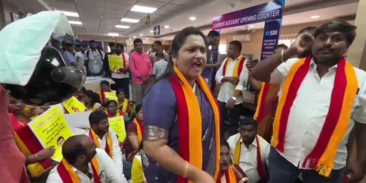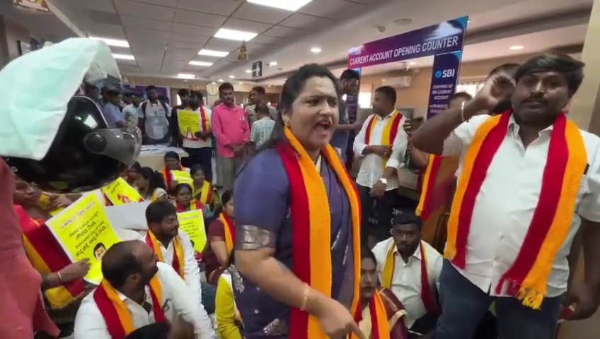 ಎಸ್ಬಿಐನಿಂದ ಮನವಿ ಸ್ವೀಕಾರ: ಕರವೇ ಮುಖಂಡರು ಎಸ್ಬಿಐ ಜನರಲ್ ಮ್ಯಾನೇಜರ್ ಸುಶೀಲ್ ಕುಮಾರ್ ಅವರನ್ನು ಭೇಟಿಯಾಗಿ ಮನವಿ ಸಲ್ಲಿಸಿದರು. ಸುಶೀಲ್ ಕುಮಾರ್, ಮನವಿಯನ್ನು ಸ್ವೀಕರಿಸಿ, ಘಟನೆಯ ಬಗ್ಗೆ ಸೂಕ್ತ ಕ್ರಮ ಕೈಗೊಳ್ಳುವ ಭರವಸೆ ನೀಡಿದ್ದಾರೆ. ಆದರೆ, ಮಾಧ್ಯಮಗಳಿಗೆ ಈ ವಿಷಯದ ಬಗ್ಗೆ ಹೆಚ್ಚಿನ ಮಾಹಿತಿ ನೀಡಲು ತಾವು ಅಧಿಕೃತ ವ್ಯಕ್ತಿಯಲ್ಲ ಎಂದು ತಿಳಿಸಿದ್ದಾರೆ. ಎಸ್ಬಿಐ ಈ ಘಟನೆಗೆ ಕ್ಷಮೆಯಾಚಿಸಿ, ವಿಷಯವನ್ನು ಸಂಪೂರ್ಣವಾಗಿ ಪರಿಶೀಲಿಸುವುದಾಗಿ ತಿಳಿಸಿದೆ. ಬ್ಯಾಂಕ್ನ ಗ್ರಾಹಕರ ಭಾವನೆಗೆ ಧಕ್ಕೆ ತರುವ ಯಾವುದೇ ವರ್ತನೆಗೆ ಶೂನ್ಯ ಸಹಿಷ್ಣುತೆಯ ನೀತಿಯನ್ನು ಹೊಂದಿದೆ ಎಂದು ಹೇಳಿಕೊಂಡಿದೆ.