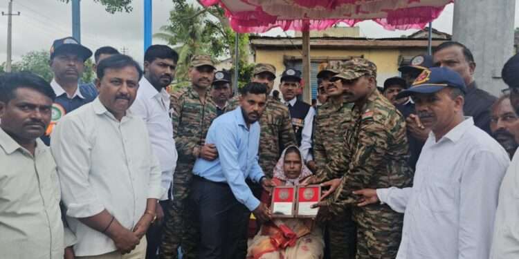 ಬೆಂಗಳೂರು: ಕಾರ್ಗಿಲ್ ವಿಜಯ ದಿವಸದ 26ನೇ ವಾರ್ಷಿಕೋತ್ಸವದ ಅಂಗವಾಗಿ, ಭಾರತೀಯ ಸೇನೆಯ ತಂಡವು ನಾಯಬ್ ಸುಬೇದಾರ್ ತಿಲಕ ಸಿಎಲ್ ನೇತೃತ್ವದಲ್ಲಿ ಜುಲೈ 12, 2025 ರಂದು ಕರ್ನಾಟಕದ ಬೆಳಗಾವಿ ಜಿಲ್ಲೆಯಲ್ಲಿ ವೀರಯೋಧ ನಾಯಕ್ ಯಶವಂತ್ ದುರಗಪ್ಪ ಕೊಲ್ಕರ್ (255 ಮೀಡಿಯಂ ರೆಜಿಮೆಂಟ್) ಅವರ ಪತ್ನಿ ಸಾವಿತ್ರಿ ದೇವಿ ಅವರನ್ನು ಭೇಟಿಯಾಯಿತು.