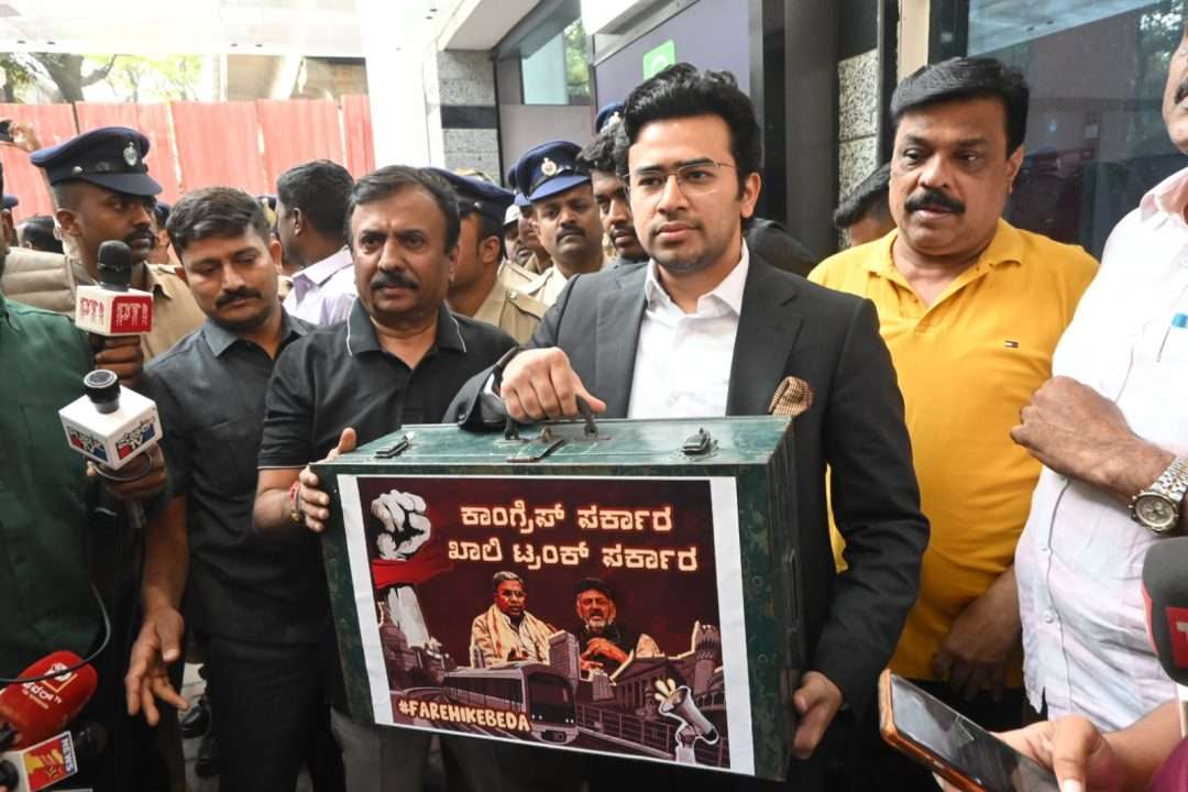 X (ಟ್ವಿಟರ್) ನಲ್ಲಿ ಪ್ರತಿಕ್ರಿಯಿಸಿದ ಸೂರ್ಯ ಅವರು, “ನನ್ನನ್ನು ಬಂಧಿಸುವುದರಿಂದ ನನ್ನ ಧ್ವನಿಯನ್ನು ಅಡಗಿಸಲು ಸಾಧ್ಯವಿಲ್ಲ! ‘ಖಾಲಿ ಟ್ರಂಕ್’ ಸರ್ಕಾರದ ಸತ್ಯವನ್ನು ಬಯಲಿಗೆಳೆದಿದ್ದಕ್ಕಾಗಿ ನನ್ನನ್ನು ಬಂಧಿಸಿರುವುದು ನಾಚಿಕೆಗೇಡಿನ ಸಂಗತಿ. ಕರ್ನಾಟಕದ ಆರ್ಥಿಕತೆ ಹದಗೆಟ್ಟಿದೆ ಮತ್ತು ಅದರ ಬೆಲೆಯನ್ನು ನಾಗರಿಕರು ಮೆಟ್ರೋ ದರ ಏರಿಕೆಯ ಮೂಲಕ ಪಾವತಿಸುತ್ತಿದ್ದಾರೆ” ಎಂದು ಬರೆದರು.