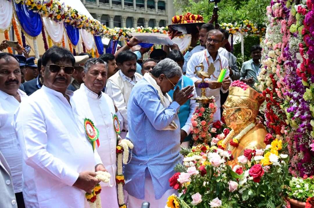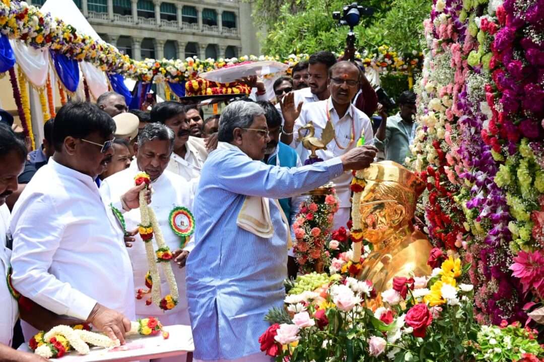 ಬೆಂಗಳೂರು: ಸಮಾಜ ಕಲ್ಯಾಣ ಇಲಾಖೆಯ ವತಿಯಿಂದ ಆಯೋಜಿಸಲಾಗಿದ್ದ ಹಸಿರು ಕ್ರಾಂತಿಯ ಹರಿಕಾರ, ರಾಷ್ಟ್ರ ನಾಯಕ ಹಾಗೂ ಭಾರತದ ಮಾಜಿ ಉಪ ಪ್ರಧಾನಿ ಡಾ. ಬಾಬು ಜಗಜೀವನ್ ರಾಮ್ ಅವರ 119ನೇ ಜನ್ಮದಿನಾಚರಣೆ ಪ್ರಯುಕ್ತ ವಿಧಾನಸೌಧದ ಪಶ್ಚಿಮ ದ್ವಾರದಲ್ಲಿರುವ ಅವರ ಪ್ರತಿಮೆಗೆ ಮುಖ್ಯಮಂತ್ರಿ ಸಿದ್ದರಾಮಯ್ಯ ಅವರು ಮಾಲಾರ್ಪಣೆ ಮಾಡಿ ಪುಷ್ಪನಮನ ಸಲ್ಲಿಸಿದರು.
