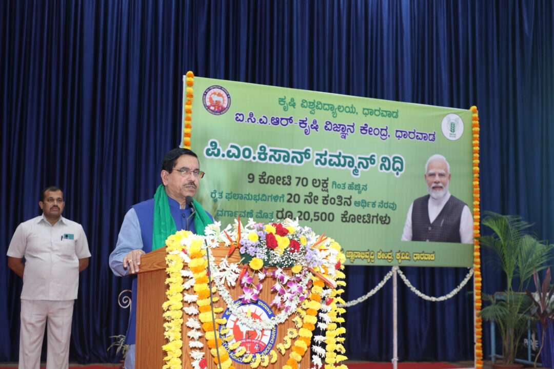 ಕಾರ್ಯಕ್ರಮದಲ್ಲಿ ಮಾತನಾಡಿದ ಸಚಿವ ಜೋಶಿ, ರೈತರು ಕಿಸಾನ್ ಕ್ರೆಡಿಟ್ ಕಾರ್ಡ್, ಪಿಎಮ್-ಕುಸುಮ್, ಕೃಷಿ ಸಿಂಚಯ ಯೋಜನೆಗಳಂತಹ ಧನಸಹಾಯ ಯೋಜನೆಗಳ ಸದುಪಯೋಗ ಪಡೆದು ಕೃಷಿಯಲ್ಲಿ ಪ್ರಗತಿ ಸಾಧಿಸಬೇಕು ಎಂದು ಕರೆ ನೀಡಿದರು. ಪಿಎಂ ಕಿಸಾನ್ ಸಮ್ಮಾನ್ ನಿಧಿಯಡಿ ವರ್ಷಕ್ಕೆ ₹6000 ಮೂರು ಕಂತುಗಳಲ್ಲಿ ರೈತರ ಖಾತೆಗೆ ನೇರವಾಗಿ ಜಮೆಯಾಗುತ್ತಿದ್ದು, ಈ ಹಣವನ್ನು ಕೃಷಿ ಪರಿಕರಗಳ ಖರೀದಿ, ಆಧುನಿಕ ತಂತ್ರಜ್ಞಾನ ಅಳವಡಿಕೆ ಮತ್ತು ಕುಟುಂಬದ ಉನ್ನತಿಗಾಗಿ ಬಳಸಿಕೊಳ್ಳಬೇಕೆಂದು ತಿಳಿಸಿದರು.