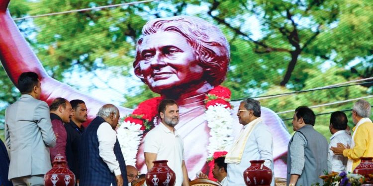 ಕಂದಾಯ ಇಲಾಖೆ ಆಯೋಜಿಸಿದ್ದ “ಸಮರ್ಪಣೆ ಸಂಕಲ್ಪ” ಸಮಾವೇಶದಲ್ಲಿ, 1,11,111 ಕುಟುಂಬಗಳಿಗೆ ಒಂದೇ ದಿನ ಹಕ್ಕುಪತ್ರ ವಿತರಿಸಿ, ಇಂದಿರಾ ಗಾಂಧಿ ಅವರ ಪ್ರತಿಮೆಯನ್ನು ಲೋಕಾರ್ಪಣೆಗೊಳಿಸಿ ಮಾತನಾಡಿದ ಸಿದ್ದರಾಮಯ್ಯ, “ನಮ್ಮ ಮೊದಲ ಅವಧಿಯಲ್ಲಿ 165 ಭರವಸೆಗಳಲ್ಲಿ 158 ಈಡೇರಿಸಿದ್ದೇವೆ. ಜೊತೆಗೆ, ಪ್ರಣಾಳಿಕೆಯಲ್ಲಿ ಇಲ್ಲದ 30 ಹೊಸ ಕಾರ್ಯಕ್ರಮಗಳನ್ನು ಜಾರಿಗೊಳಿಸಿದ್ದೇವೆ,” ಎಂದರು. ಬಿಜೆಪಿಯು ತನ್ನ ಭರವಸೆಗಳನ್ನು ಈಡೇರಿಸದೆ ಜನರನ್ನು ಮೋಸಗೊಳಿಸುತ್ತಿದೆ ಎಂದು ಅವರು ಟೀಕಿಸಿದರು.