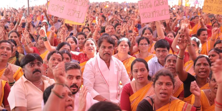 ಅಂಗನವಾಡಿ ಕಾರ್ಯಕರ್ತೆಯರ ಪ್ರತಿಭಟನೆಗೆ ಬಿಜೆಪಿ ಬೆಂಬಲ ನೀಡುತ್ತಿದೆ. ಅವರನ್ನು ಕರೆದು ಮಾತಾಡಿ ಭರವಸೆ ನೀಡಲಿ. ಇಲ್ಲದಿದ್ದರೆ ಸರ್ಕಾರದ ವಿರುದ್ಧ ಹೋರಾಟ ಮಾಡಲಾಗುವುದು. ಅಂಗನವಾಡಿ ಕಾರ್ಯಕರ್ತೆಯರಿಗೆ ಪ್ರತಿಭಟಿಸಲು ಅವಕಾಶ ನೀಡದೇ ಇದ್ದಲ್ಲಿ ನಾನೇ ಬಂದು ಪ್ರತಿಭಟನೆಗೆ ಕೂರುತ್ತೇನೆ ಎಂದು ಎಚ್ಚರಿಕೆ ನೀಡಿದರು.