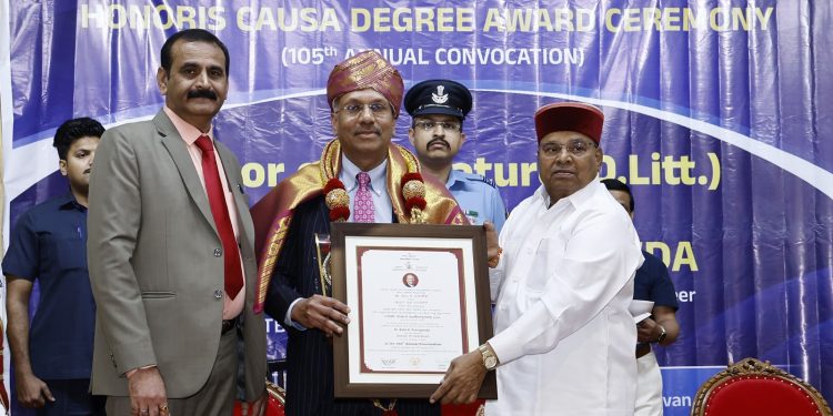 “ಘಟಿಕೋತ್ಸವದ ಸಂದರ್ಭದಲ್ಲಿ ಶಿಕ್ಷಣ, ವಿಜ್ಞಾನ, ಸಾಹಿತ್ಯ ಮತ್ತು ಸಾಮಾಜಿಕ ಕ್ಷೇತ್ರಗಳಲ್ಲಿ ಅತ್ಯುತ್ತಮ ಸೇವೆ ಸಲ್ಲಿಸಿದ ಮತ್ತು ದೇಶದ ಪ್ರಗತಿಗೆ ಗಣನೀಯ ಕೊಡುಗೆ ನೀಡಿದ ಮಹನೀಯರಿಗೆ ವಿಶ್ವವಿದ್ಯಾಲಯವು ಗೌರವ ಡಾಕ್ಟರೇಟ್ ಪದವಿಗಳನ್ನು ನೀಡುತ್ತಿರುವುದು ಸಂತೋಷದ ಸಂಗತಿಯಾಗಿದೆ” ಎಂದು ಹೇಳಿದರು.