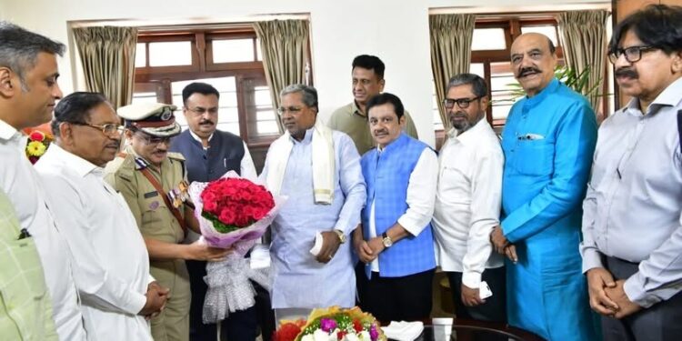 ಬೆಂಗಳೂರು: ಕರ್ನಾಟಕದ ರಾಜಧಾನಿ ಬೆಂಗಳೂರಿನಲ್ಲಿ ಕಾನೂನು ಸುವ್ಯವಸ್ಥೆ, ಸಂಚಾರ ವ್ಯವಸ್ಥೆ, ಮಹಿಳೆಯರ ಸುರಕ್ಷತೆ, ಮತ್ತು ಡ್ರಗ್ಸ್ನಂತಹ ಸಾಮಾಜಿಕ ಕಳಂಕಗಳ ನಿಯಂತ್ರಣಕ್ಕೆ ಸಂಬಂಧಿಸಿದಂತೆ ಗೃಹ ಸಚಿವ ಡಾ. ಜಿ. ಪರಮೇಶ್ವರ್ರವರು ಮಂಗಳವಾರ (ಮೇ 27, 2025) ಪೊಲೀಸ್ ಆಯುಕ್ತರ ಕಚೇರಿಗೆ ಭೇಟಿ ನೀಡಿದರು. ಈ ಭೇಟಿಯ ಸಂದರ್ಭದಲ್ಲಿ, ನೂತನವಾಗಿ ನೇಮಕಗೊಂಡಿರುವ ಹಂಗಾಮಿ ಡಿಜಿ-ಐಜಿಪಿ ಸಲೀಂ ಅವರೊಂದಿಗೆ ಮೊದಲ ಸಭೆ ನಡೆಸಿದ ಗೃಹ ಸಚಿವರು, ಬೆಂಗಳೂರಿನ ಸಂಚಾರ ಸಮಸ್ಯೆ, ಡ್ರಗ್ಸ್ನಿಯಂತ್ರಣ, ಮಹಿಳೆಯರ ಸುರಕ್ಷತೆ, ಮತ್ತು ಸಾರ್ವಜನಿಕರೊಂದಿಗೆ ಪೊಲೀಸರ ಸಂವಾದದ ಕುರಿತು ವಿವರವಾದ ಚರ್ಚೆ ನಡೆಸಿದರು.