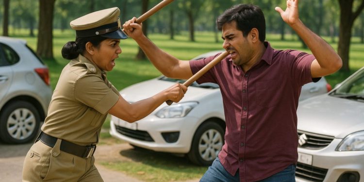 ಬೆಂಗಳೂರಿನ ಜೀವನ್ ಭೀಮಾನಗರದಲ್ಲಿ ಪಾರ್ಕಿಂಗ್ ವಿವಾದದ ಹಿನ್ನೆಲೆಯಲ್ಲಿ ಅಬಕಾರಿ ಇಲಾಖೆಯ ಮಹಿಳಾ ಕಾನ್ಸ್ಟೇಬಲ್ ಸಬ್ರೀನ್ ಎಂಬುವವರು ಯುವಕನೊಬ್ಬನಿಗೆ ಹಲ್ಲೆ ನಡೆಸಿದ ಘಟನೆ ನಡೆದಿದೆ. ಈ ಘಟನೆಯನ್ನು ವಿಡಿಯೋ ಮಾಡುತ್ತಿದ್ದ ಮತ್ತೊಬ್ಬ ಯುವಕನ ಮೇಲೂ ಹಲ್ಲೆ ನಡೆಸಲಾಗಿದೆ. ಪ್ರಕರಣಕ್ಕೆ ಸಂಬಂಧಿಸಿ ಜೀವನಭೀಮಾ ನಗರ ಪೊಲೀಸ್ ಠಾಣೆಯಲ್ಲಿ ದೂರು ದಾಖಲಾಗಿದೆ.