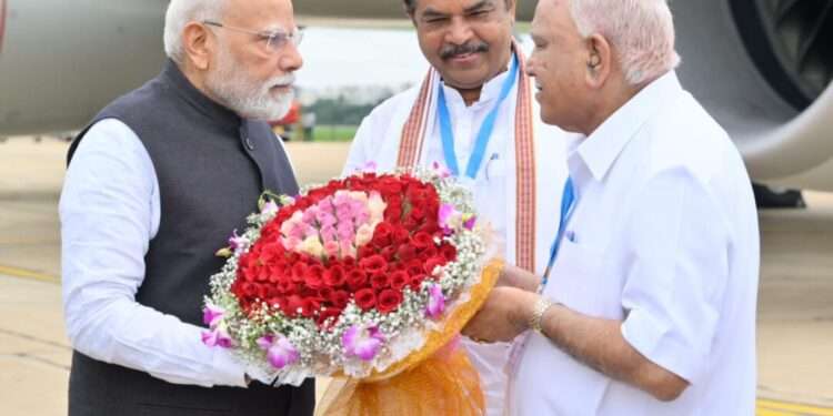 ಪ್ರಧಾನ ಮಂತ್ರಿಗಳನ್ನು ಕರ್ನಾಟಕ ವಿಧಾನಸಭೆಯ ವಿರೋಧ ಪಕ್ಷದ ನಾಯಕ ಶ್ರೀ ಆರ್. ಅಶೋಕ್ ಅವರು ಆತ್ಮೀಯವಾಗಿ ಸ್ವಾಗತಿಸಿದರು. ಈ ಸಂದರ್ಭದಲ್ಲಿ ಮಾಜಿ ಮುಖ್ಯಮಂತ್ರಿ ಶ್ರೀ ಬಿ.ಎಸ್. ಯಡಿಯೂರಪ್ಪ, ಸರ್ಕಾರದ ಮುಖ್ಯ ಕಾರ್ಯದರ್ಶಿ ಡಾ. ಶaline ರಜನೀಶ್, ಕರ್ನಾಟಕ ಪೊಲೀಸ್ ಮಹಾನಿರ್ದೇಶಕ ಶ್ರೀ ಎಂ.ಎ. ಸಲೀಂ, ಬೆಂಗಳೂರು ನಗರ ಜಿಲ್ಲಾಧಿಕಾರಿ ಶ್ರೀ ಜಗದೀಶ್ ಜಿ. ಸೇರಿದಂತೆ ಗಣ್ಯರು ಮತ್ತು ಹಿರಿಯ ಅಧಿಕಾರಿಗಳು ಉಪಸ್ಥಿತರಿದ್ದರು.