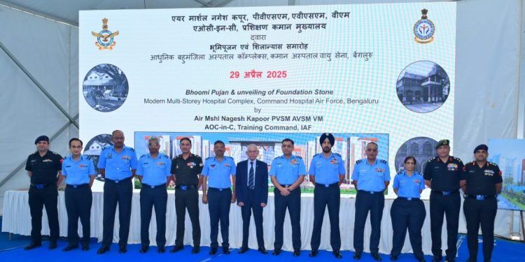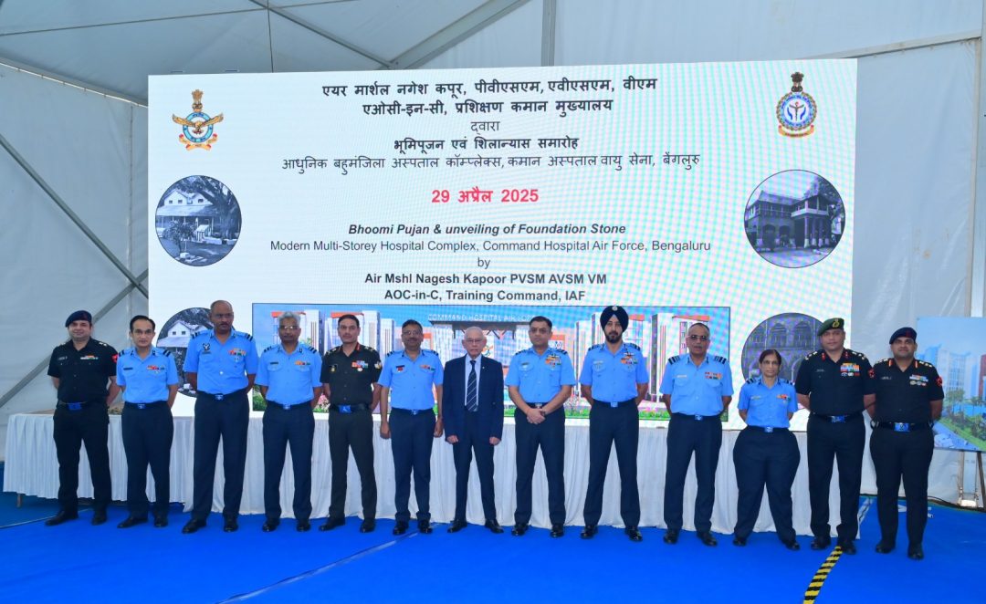 ಬೆಂಗಳೂರು, ಏಪ್ರಿಲ್ 29, 2025: ಭಾರತೀಯ ವಾಯುಪಡೆಯ ಕಮಾಂಡ್ ಆಸ್ಪತ್ರೆ (CHAF), ಬೆಂಗಳೂರಿನಲ್ಲಿ ಇಂದು (ಏಪ್ರಿಲ್ 29, 2025) ಅತ್ಯಾಧುನಿಕ ಬಹುಮಹಡಿ ಆಸ್ಪತ್ರೆ ಸಂಕೀರ್ಣದ ನಿರ್ಮಾಣಕ್ಕೆ ಶಿಲಾನ್ಯಾಸ ಸಮಾರಂಭ ನಡೆಯಿತು. ತರಬೇತಿ ಕಮಾಂಡ್ನ ವಾಯು ಅಧಿಕಾರಿ ಕಮಾಂಡಿಂಗ್-ಇನ್-ಚೀಫ್ (AOC-in-C) ಏರ್ ಮಾರ್ಷಲ್ ನಾಗೇಶ್ ಕಪೂರ್ ಅವರು, ವಾಯುಪಡೆಯ ಪ್ರಧಾನ ವೈದ್ಯಕೀಯ ಸೇವೆಗಳ (ವಾಯು) ಮಹಾನಿರ್ದೇಶಕ ಏರ್ ಮಾರ್ಷಲ್ ಸಂದೀಪ್ ಥರೇಜಾ ಅವರ ಸಮ್ಮುಖದಲ್ಲಿ ಶಂಕುಸ್ಥಾಪನೆ ನೆರವೇರಿಸಿದರು. ಈ ಕಾರ್ಯಕ್ರಮವು ಭಾರತದ ಮಿಲಿಟರಿ ಆರೋಗ್ಯ ಮೂಲಸೌಕರ್ಯದ ಆಧುನೀಕರಣದಲ್ಲಿ ಪ್ರಮುಖ ಹೆಜ್ಜೆಯಾಗಿದೆ.