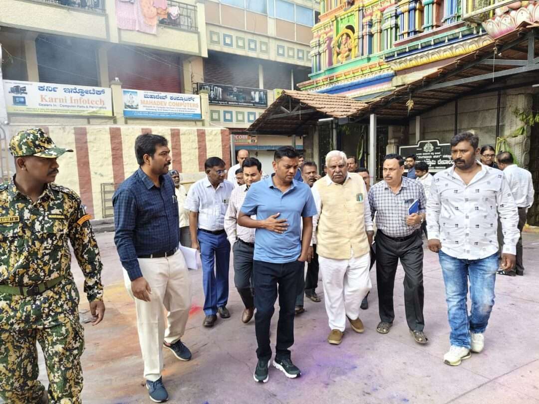 ಬೆಂಗಳೂರು: ಐತಿಹಾಸಿಕ ಬೆಂಗಳೂರು ಕರಗ ಮಹೋತ್ಸವದ ಸುಗಮ ನಿರ್ವಹಣೆಗಾಗಿ ಬೆಂಗಳೂರು ಕೇಂದ್ರ ನಗರ ಪಾಲಿಕೆಯ ಆಯುಕ್ತ ಶ್ರೀ ರಾಜೇಂದ್ರ ಚೋಳನ್ ಅವರು ಇಂದು ಬೆಳಿಗ್ಗೆ ಧರ್ಮರಾಯಸ್ವಾಮಿ ದೇವಸ್ಥಾನ ಹಾಗೂ ಸುತ್ತಮುತ್ತಲಿನ ಪ್ರದೇಶಗಳಿಗೆ ಭೇಟಿ ನೀಡಿ ಸ್ಥಳ ಪರಿಶೀಲನೆ ನಡೆಸಿದರು.