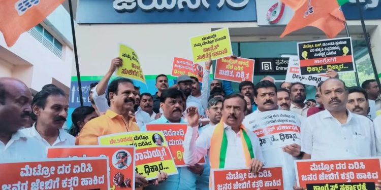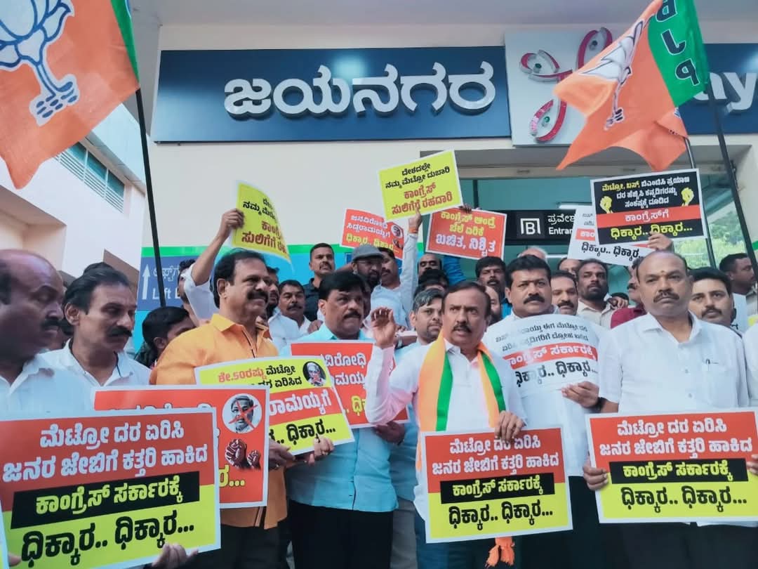 ಬಿ.ಎಮ್.ಆರ್.ಸಿ.ಎಲ್ (ಬೆಂಗಳೂರು ಮೆಟ್ರೋ ರೈಲ್ ಕಾರ್ಪೊರೇಶನ್ ಲಿಮಿಟೆಡ್) ಇತ್ತೀಚೆಗೆ ಮೆಟ್ರೋ ಪ್ರಯಾಣ ದರ ಶೇ. 46% ಹೆಚ್ಚಳ ಮಾಡುವ ನಿರ್ಧಾರವನ್ನು ಪ್ರಕಟಿಸಿದೆ. ಈ ನಿರ್ಧಾರವು ಸಾಮಾನ್ಯ ನಾಗರಿಕರ ಮೇಲೆ ಭಾರಿಯಾಗಲಿದೆ ಎಂಬ ಕಾರಣದಿಂದ ಬಿಜೆಪಿಯ ಕಾರ್ಯಕರ್ತರು ಹಾಗೂ ಮುಖಂಡರು ಕಾಂಗ್ರೆಸ್ ಸರ್ಕಾರದ ವಿರುದ್ಧ ಗಂಭೀರ ಆಕ್ರೋಶ ವ್ಯಕ್ತಪಡಿಸಿದರು.