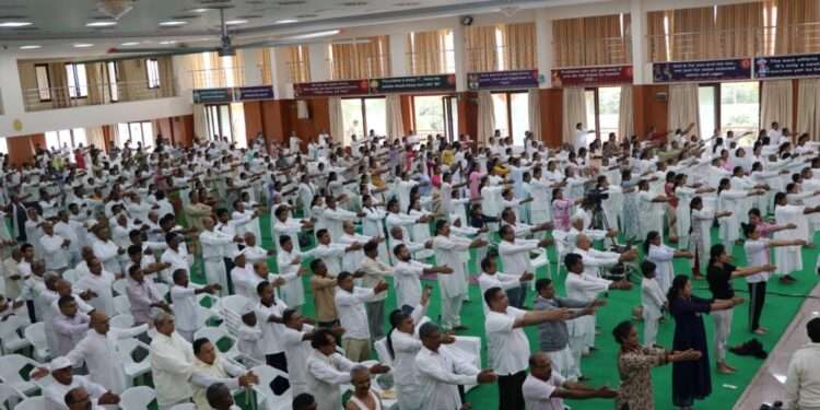 ಬೆಂಗಳೂರು: 11ನೇ ಅಂತಾರಾಷ್ಟ್ರೀಯ ಯೋಗ ದಿನಾಚರಣೆಯ ಪೂರ್ವಭಾವಿಯಾಗಿ, ಕೇಂದ್ರ ಸಂವಹನ ಇಲಾಖೆಯು ಬ್ರಹ್ಮಕುಮಾರಿ ಸಂಸ್ಥೆಯ ಸಹಯೋಗದೊಂದಿಗೆ ಜೂನ್ 15ರಂದು ಬೆಂಗಳೂರಿನ ಗೊಟ್ಟಿಗೆರೆಯ ರಾಜಯೋಗ ಭವನದಲ್ಲಿ ಸಾಮೂಹಿಕ ಯೋಗ ಕಾರ್ಯಕ್ರಮವನ್ನು ಆಯೋಜಿಸಿತು. ಈ ಕಾರ್ಯಕ್ರಮದಲ್ಲಿ ಸಾವಿರಕ್ಕೂ ಹೆಚ್ಚು ಯೋಗ ಉತ್ಸಾಹಿಗಳು ಭಾಗವಹಿಸಿ, ಮಕ್ಕಳಿಂದ ಹಿರಿಯರವರೆಗಿನ ಎಲ್ಲಾ ವಯಸ್ಸಿನ ಯೋಗಾಭ್ಯಾಸಿಗಳು ಯೋಗಾಸನಗಳನ್ನು ಪ್ರದರ್ಶಿಸಿದರು.