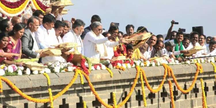 ಮಂಡ್ಯ, ಜೂನ್ 30, 2025: ಮುಖ್ಯಮಂತ್ರಿ ಸಿದ್ದರಾಮಯ್ಯ ಅವರು ಇಂದು ಕೃಷ್ಣರಾಜ ಸಾಗರ (ಕೆಆರ್ಎಸ್) ಜಲಾಶಯದಲ್ಲಿ ಕಾವೇರಿ ನದಿಗೆ ಬಾಗಿನ ಸಮರ್ಪಿಸಿ ಆಚರಣೆಯನ್ನು ನೆರವೇರಿಸಿದರು. ಈ ಐತಿಹಾಸಿಕ ಸಮಾರಂಭವು ಕೃಷಿಕರ ಹಿತದೃಷ್ಟಿಯಿಂದ ಮತ್ತು ನದಿಯ ಪ್ರತಿಷ್ಠೆಯನ್ನು ಉಳಿಸುವ ಉದ್ದೇಶದಿಂದ ಆಯೋಜಿಸಲಾಗಿತ್ತು.