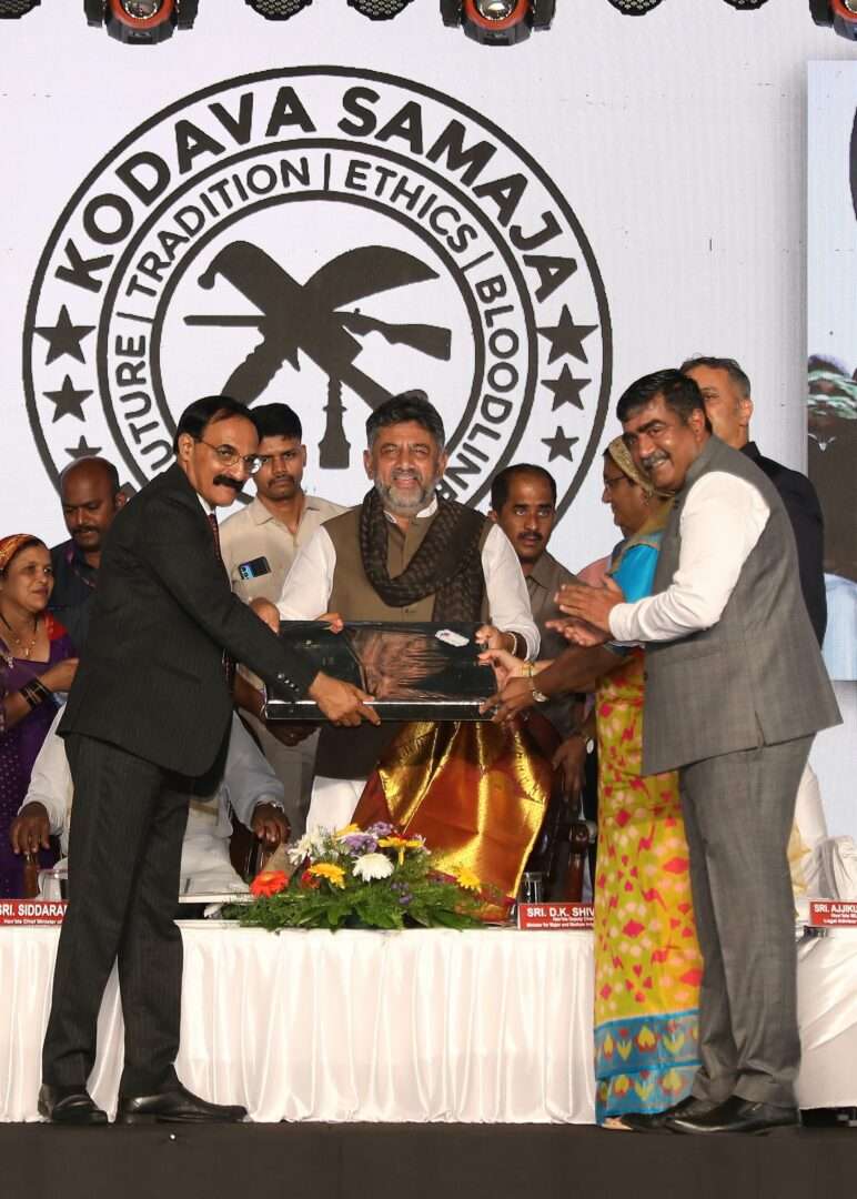 ಕರ್ನಾಟಕ ಸರ್ಕಾರವು ಕೊಡವ ಸಮಾಜಕ್ಕೆ ಬೆಂಗಳೂರಿನಲ್ಲಿ ಏಳು ಎಕರೆ ಭೂಮಿ ಮಂಜೂರು ಮಾಡಿರುವ ಹಿನ್ನೆಲೆಯಲ್ಲಿ, ಕೊಡವ ಸಮಾಜದವರು ಭಾನುವಾರ ನಗರದಲ್ಲಿ ಆಯೋಜಿಸಿದ್ದ ಅಭಿನಂದನಾ ಸಮಾರಂಭದಲ್ಲಿ ಡಿಸಿಎಂ ಶಿವಕುಮಾರ್ ಮಾತನಾಡಿದರು.