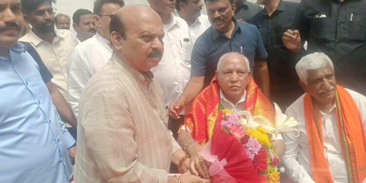 ಬೆಂಗಳೂರು: ಬಿಜೆಪಿ ಹಿರಿಯ ನಾಯಕರು ಹಾಗೂ ಮಾಜಿ ಮುಖ್ಯಮಂತ್ರಿ ಬಿ.ಎಸ್. ಯಡಿಯೂರಪ್ಪ ಅವರ 83ನೇ ಹುಟ್ಟುಹಬ್ಬದ ಹಿನ್ನೆಲೆಯಲ್ಲಿ ಇಂದು ಮಾಜಿ ಮುಖ್ಯಮಂತ್ರಿ ಹಾಗೂ ಸಂಸದ ಬಸವರಾಜ ಬೊಮ್ಮಾಯಿ ಬೆಂಗಳೂರಿನ ಅವರ ನಿವಾಸಕ್ಕೆ ತೆರಳಿ ಶುಭಕೋರಿದರು.