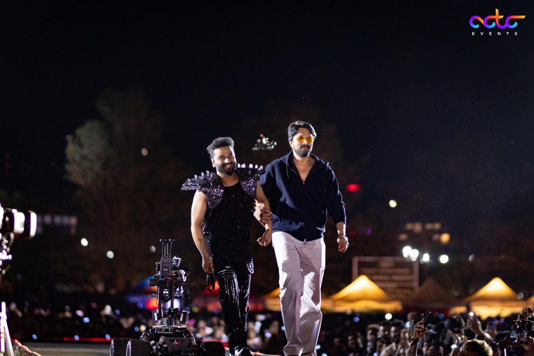 ರಾಕ್ ಸ್ಟಾರ್ ದೇವಿ ಶ್ರೀ ಪ್ರಸಾದ್..ತೆಲುಗು ಚಿತ್ರರಂಗದ ಟ್ರೆಂಡಿಂಗ್ ಮ್ಯೂಸಿಕ್ ಡೈರೆಕ್ಟರ್. ಆರ್ಯ’, ‘ಬನ್ನಿ, ‘ಆರ್ಯ 2’, ‘ಜುಲಾಯಿ’, ‘ಇದ್ದಿರಮ್ಮಾಯಿಲತೋ’, ‘ಸನ್ ಆಫ್ ಸತ್ಯಮೂರ್ತಿ’, ರಂಗಸ್ಥಳಂ, ಇತ್ತೀಚಿಗೆ ಬಂದ ಪುಷ್ಪ ಸರಣಿ ಚಿತ್ರಗಳಿಗೆ ಸಂಗೀತ ಒದಗಿಸಿರುವ DSP, ಮೊದಲ ಬಾರಿಗೆ ಸಿಲಿಕಾನ್ ಸಿಟಿ ಬೆಂಗಳೂರಿನಲ್ಲಿ ಲೈವ್ ಕಾನ್ಸರ್ಟ್ ನಡೆಸಿದರು. ನಗರದ ಮಾದವರ ಬಳಿಕ ನೈಸ್ ಗ್ರೌಂಡ್ ನಲ್ಲಿ ನಡೆದ ಅದ್ಧೂರಿ ಸಂಗೀತ ಸಂಜೆಯಲ್ಲಿ ಸಿಲಿಕಾನ್ ಮಂದಿ ಭಾಗಿಯಾಗಿ, ಡಿಎಸ್ ಪಿ ರಾಕಿಂಗ್ ಮ್ಯೂಸಿಕ್ ಗೆ ತಲೆದೂಗಿದ್ದಾರೆ. ಇಂಡಿಯನ್ ಮೈಕಲ್ ಜಾಕ್ಸನ್ ಖ್ಯಾತಿಯ ಪ್ರಭುದೇವ, ಖ್ಯಾತ ಡ್ಯಾನ್ಸ್ ಕೊರಿಯೋಗ್ರಫ್ ಗಣೇಶ್ ಆಚಾರ್ಯ ಚಿಂದಿ ಡ್ಯಾನ್ಸಿಂಗ್ ಸ್ಟೆಪ್ಸ್ ಗೆ ಜನ ಹುಚ್ಚೆದ್ದು ಕುಣಿದ್ದರು.