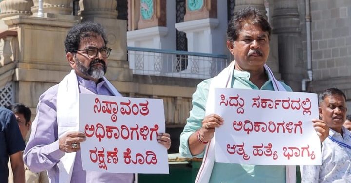 ಬೆಂಗಳೂರು: ರಾಜ್ಯದಲ್ಲಿ ಕಾಂಗ್ರೆಸ್ ಸರ್ಕಾರ ಅಧಿಕಾರಕ್ಕೆ ಬಂದ ನಂತರ ಸರಕಾರಿ ಅಧಿಕಾರಿಗಳು ಮತ್ತು ಸಿಬ್ಬಂದಿಯ ಮೇಲೆ ಹಲ್ಲೆ, ದೌರ್ಜನ್ಯಗಳ ಪ್ರಕರಣಗಳು ಹೆಚ್ಚಳಗೊಂಡಿರುವುದನ್ನು ಖಂಡಿಸಿ, ಭಯಮುಕ್ತ ಕಾರ್ಯಪದ್ಧತಿಯ ಅಗತ್ಯವನ್ನು ಒತ್ತಿಹೇಳುತ್ತಾ ವಿಧಾನಸೌಧದ ಮುಂಭಾಗ ಪ್ರತಿಭಟನೆ ನಡೆಯಲಿದೆ.