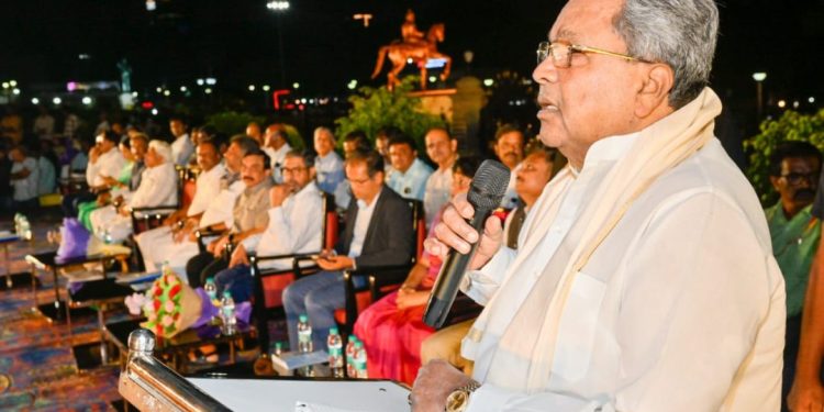 ಬೆಂಗಳೂರು: ರಾಜ್ಯ ರಾಜಧಾನಿಯ ಹೃದಯಭಾಗದಲ್ಲಿರುವ ವಿಧಾನ ಸೌಧದ ಶಾಶ್ವತ ವಿದ್ಯುತ್ ದೀಪಾಲಂಕಾರವನ್ನು ಮುಖ್ಯಮಂತ್ರಿ ಸಿದ್ದರಾಮಯ್ಯ ಅವರು ಭಾನುವಾರ ಸಂಜೆ ಭವ್ಯವಾಗಿ ಲೋಕಾರ್ಪಣೆಗೊಳಿಸಿದರು. ವಿಧಾನ ಸೌಧದ ಮೆಟ್ಟಿಲುಗಳಲ್ಲಿ ಏರ್ಪಡಿಸಿದ್ದ ವಿಶೇಷ ಸಮಾರಂಭದಲ್ಲಿ ಅವರು ದೀಪಾಲಂಕಾರವನ್ನು ಉದ್ಘಾಟಿಸಿದರು.