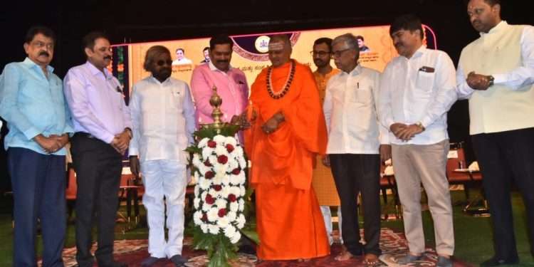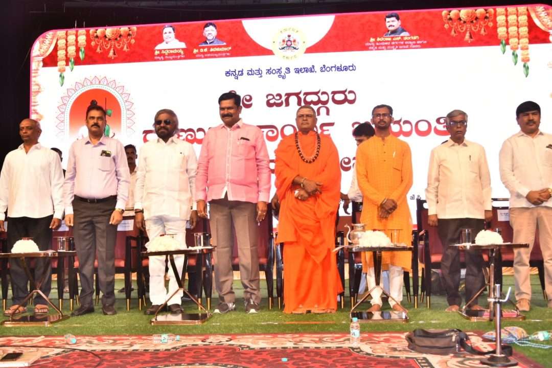 ಬೆಂಗಳೂರು: ನಗರದ ಪ್ರತಿಷ್ಠಿತ ರವೀಂದ್ರ ಕಲಾಕ್ಷೇತ್ರದ ಸಭಾಂಗಣದಲ್ಲಿ ಕನ್ನಡ ಮತ್ತು ಸಂಸ್ಕೃತಿ ಇಲಾಖೆಯ ವತಿಯಿಂದ ಆಯೋಜಿಸಲಾಗಿದ್ದ ಶ್ರೀ ಜಗದ್ಗುರು ರೇಣುಕಾಚಾರ್ಯ ಜಯಂತಿ ಯುಗಮಾನೋತ್ಸವ ಕಾರ್ಯಕ್ರಮವನ್ನು ಹಿಂದುಳಿದ ವರ್ಗಗಳ ಕಲ್ಯಾಣ ಹಾಗೂ ಕನ್ನಡ ಮತ್ತು ಸಂಸ್ಕೃತಿ ಇಲಾಖೆ ಸಚಿವರಾದ ಶ್ರೀ ಶಿವರಾಜ್ ಎಸ್. ತಂಗಡಗಿ ಅವರು ದೀಪ ಬೆಳಗಿಸಿ ಉದ್ಘಾಟಿಸಿದರು.