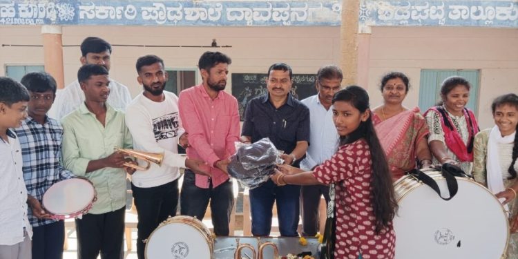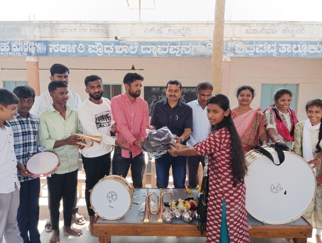 ಜಯಂತಿಗ್ರಾಮದ ಸರ್ಕಾರಿ ಫ್ರೌಡ ಶಾಲೆಗೆ, ರಾಷ್ಟ್ರೀಯ ಕ್ರೀಡಾಪಟು ಜಯಂತಿಗ್ರಾಮ ನಾರಾಯಣಸ್ವಾಮಿ ಉಚಿತವಾಗಿ ಬ್ಯಾಂಡ್ ಸೆಟ್ ವಿತರಿಸಿದರು.