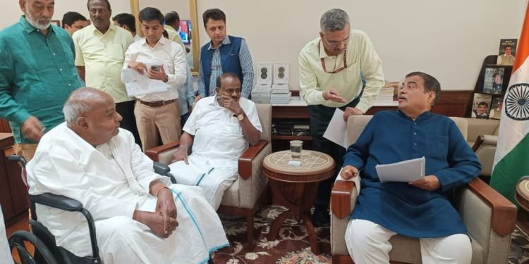 ನಾಯಕರು, ಅಧಿಕಾರಿಗಳ ನಿಯೋಗದೊಂದಿಗೆ ಗಡ್ಕರಿ ಭೇಟಿಯಾದ ದೇವೇಗೌಡ