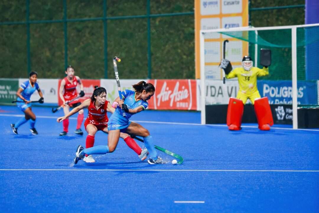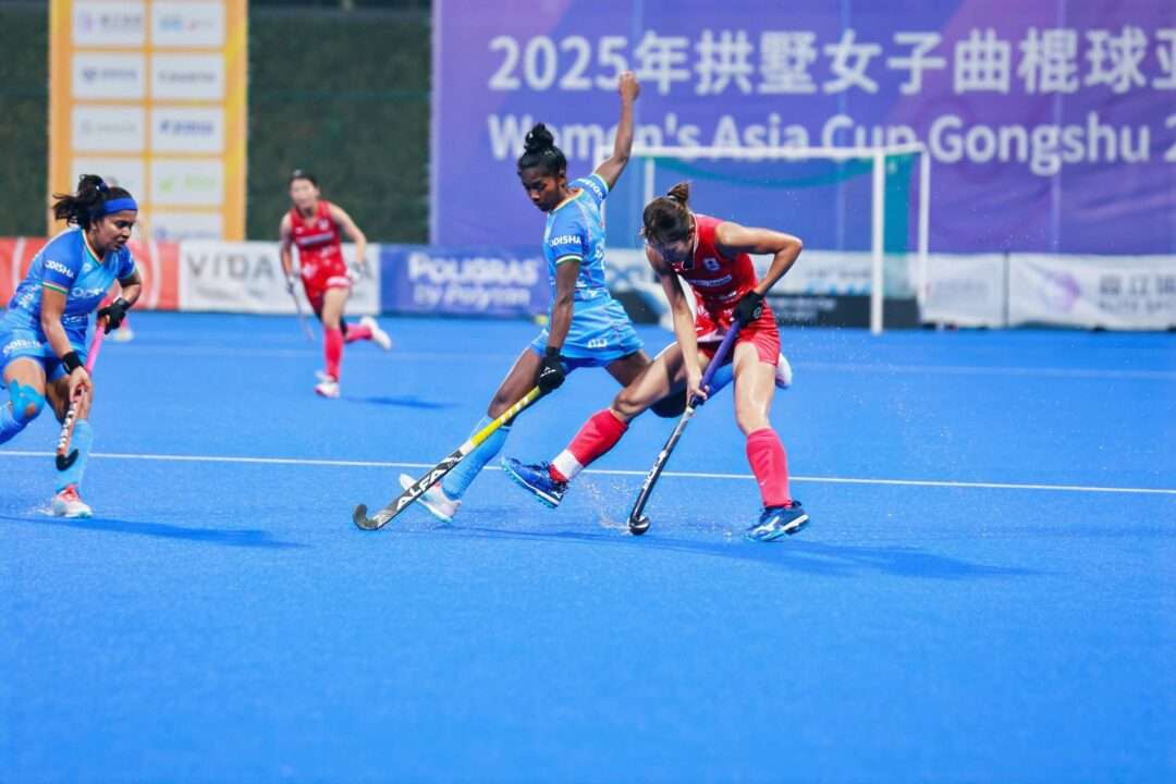 ಹಾಂಗ್ಝೌ: 2025ರ ಮಹಿಳಾ ಏಷ್ಯಾ ಕಪ್ನಲ್ಲಿ ಭಾರತದ ಮಹಿಳಾ ಹಾಕಿ ತಂಡವು ಜಪಾನ್ ವಿರುದ್ಧ ಉತ್ತಮ ಪ್ರದರ್ಶನ ನೀಡಿ 1-1 ರಿಂದ ಡ್ರಾ ಸಾಧಿಸಿತು. ಚೀನಾದ ಹಾಂಗ್ಝೌನಲ್ಲಿ ನಡೆದ ಈ ಪಂದ್ಯದಲ್ಲಿ ಭಾರತವು ಚೀನಾ ತಂಡವು ಕೊರಿಯಾವನ್ನು ಸೋಲಿಸಿದರೆ ಅಥವಾ ಮೂರು ಗೋಲುಗಳಿಗಿಂತ ಕಡಿಮೆ ಅಂತರದಲ್ಲಿ ಸೋಲದಿದ್ದರೆ, 2025ರ ಮಹಿಳಾ ಏಷ್ಯಾ ಕಪ್ನ ಫೈನಲ್ಗೆ ತಲುಪಲಿದೆ. ಜಪಾನ್ ವಿರುದ್ಧದ ಪಂದ್ಯದಲ್ಲಿ ಭಾರತವು ಬ್ಯೂಟಿ ಡಂಗ್ ಡಂಗ್ (7’) ಅವರ ಮೂಲಕ ಮೊದಲ ಗೋಲು ಗಳಿಸಿತು, ಆದರೆ ಜಪಾನ್ನ ಶಿಹೋ ಕೊಬಯಕಾವಾ (58’) ಅವರು ಸಮನಾಗಿಸಿದರು.