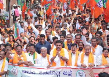 ಶಿವಮೊಗ್ಗದಲ್ಲಿ ತೀವ್ರ ಮಳೆಯ ನಡುವೆಯೂ ಬಿಜೆಪಿ ಜನಾಕ್ರೋಶ ಯಾತ್ರೆ: ಕಾಂಗ್ರೆಸ್ ಸರ್ಕಾರದ ವಿರುದ್ಧ ಬಿ ವೈ ವಿಜಯೇಂದ್ರ ಕಿಡಿ